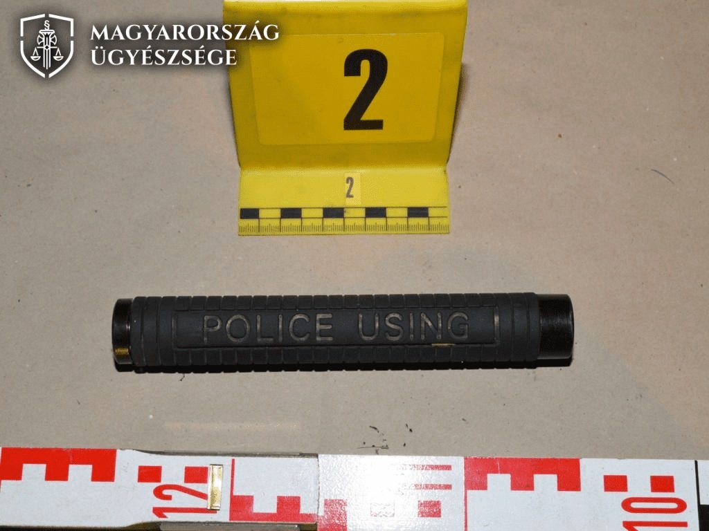 A csatolt rendőrségi szemlefotókon a bűncselekmény helyszíne és az elkövetéshez használt teleszkópos bot látható.