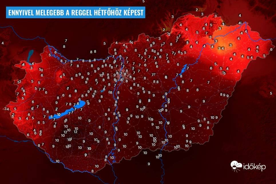 Mintha elvágták volna a téli, havas, fagyos időt. A hétvégén hűtöttek a frontok, most egy hullámzó frontrendszer hozott jóval enyhébb levegőt a Kárpát-medencébe. Ezzel együtt kiadós csapadékot hoz, már az éjszaka többfelé esős, borongós volt az idő, a zárt felhőzet pedig még inkább gyengített a kisugárzáson. Országos átlagban 7 fokkal enyhébb a reggel, mint hétfőn, amit 24 órás hőmérséklet-változás térképünk jól szemléltet.