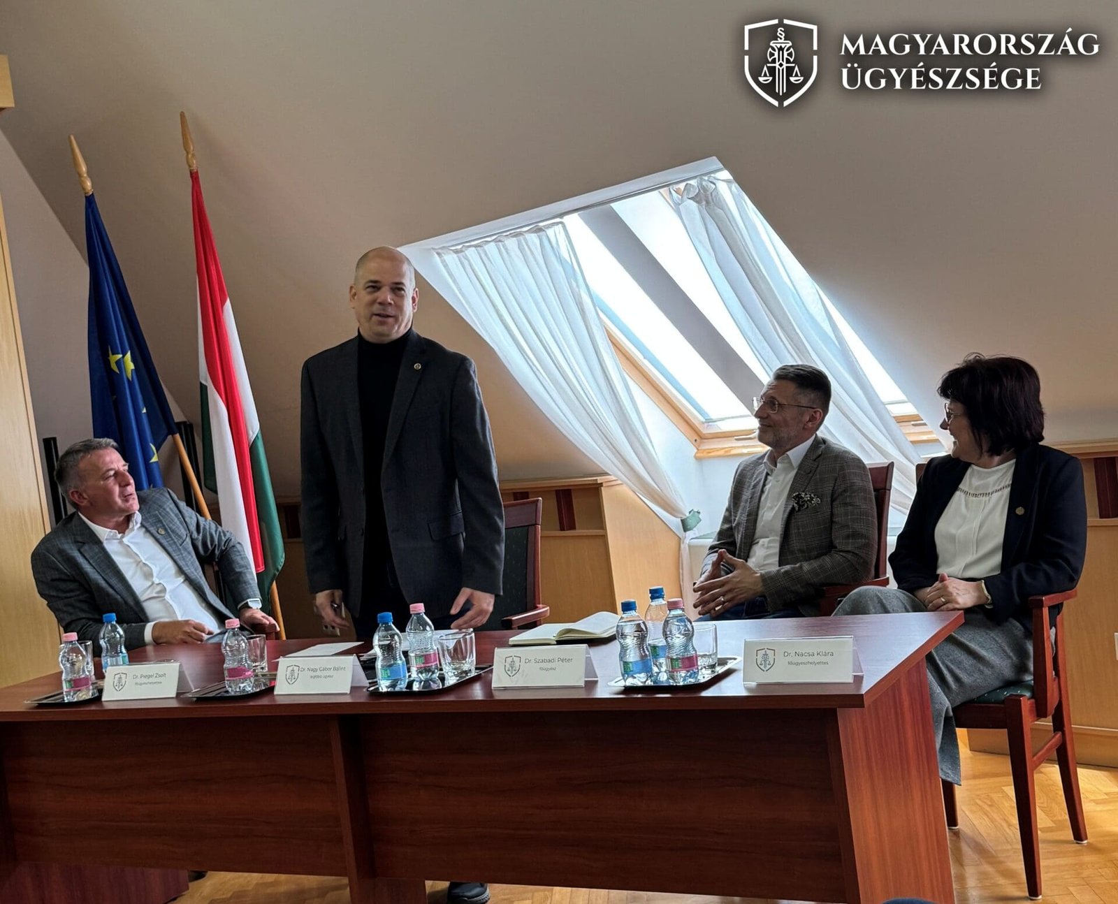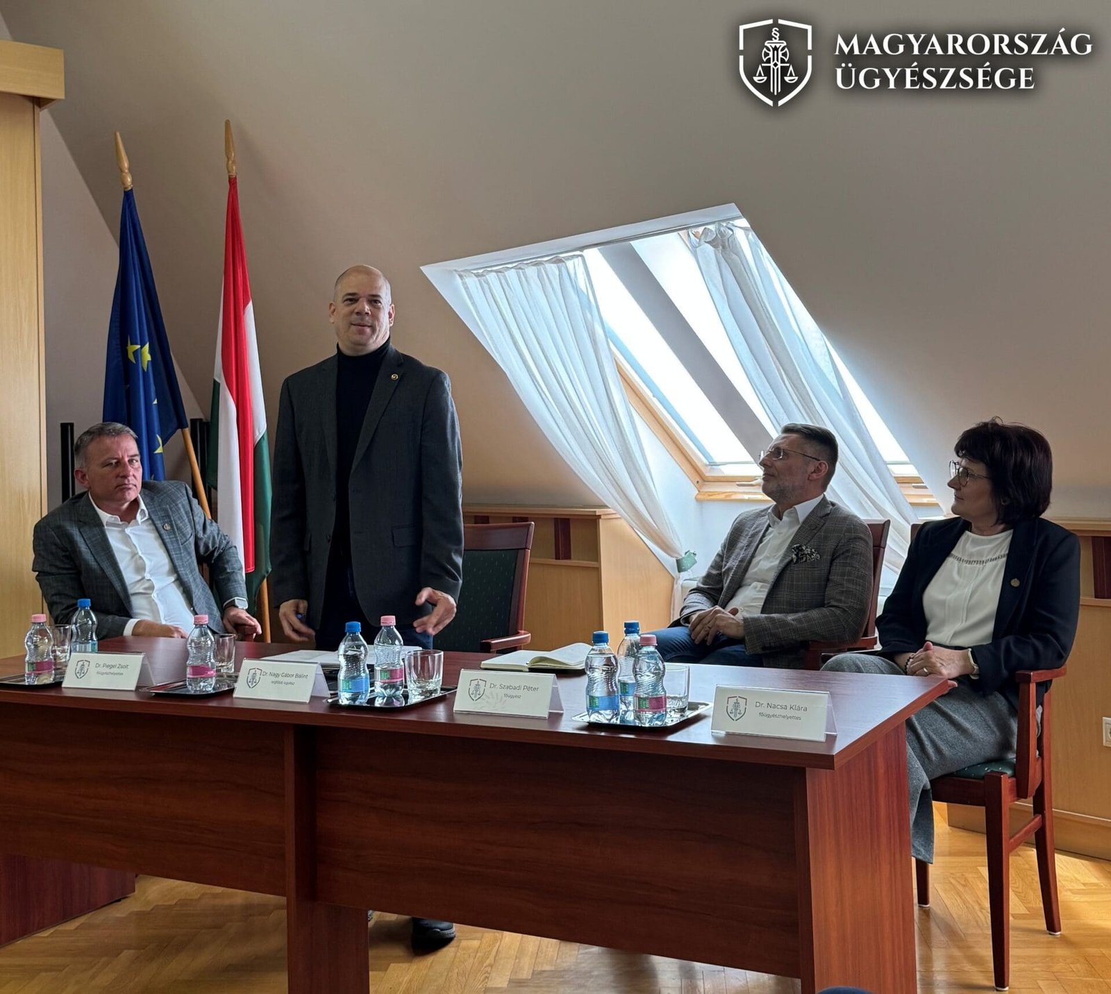 (A fotókon dr. Nagy Gábor Bálint legfőbb ügyész, dr. Szabadi Péter megbízott főügyész, dr. Nacsa Klára közjogi főügyészhelyettes és dr. Piegel Zsolt büntetőjogi főügyészhelyettes látható.)