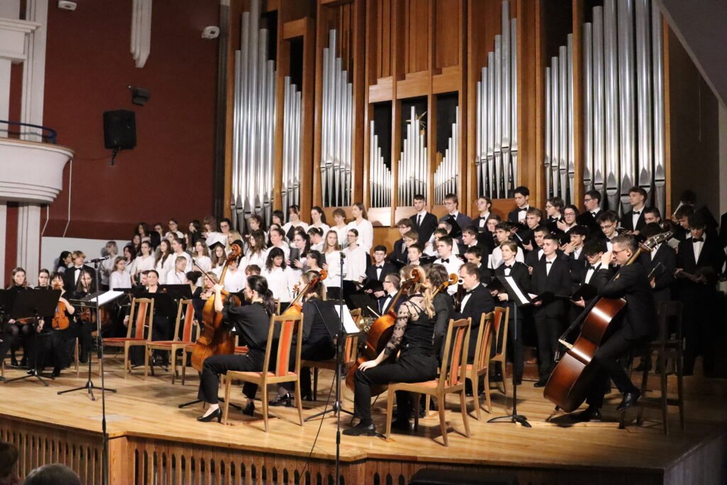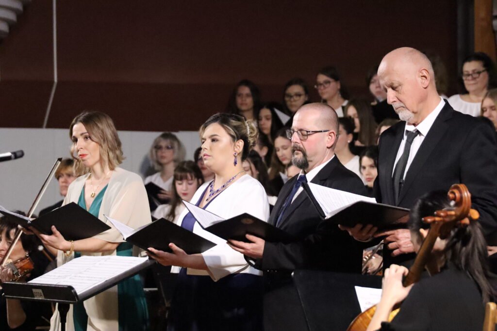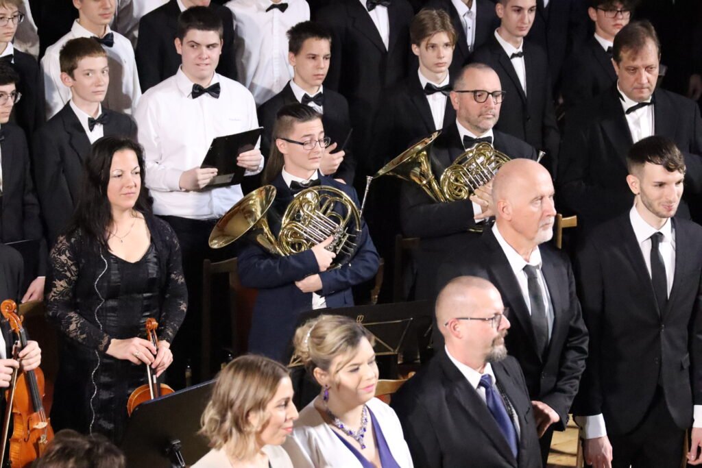 A hangverseny magját Mozart C-dúr miséje alkotta, melyet Mudrák Mariann (szoprán), Dratsay Dóra (alt), Berta István (tenor) és Altorjay Tamás (basszus) szólisták előadásában hallhatott a közönség. Az iskola volt és jelenlegi tanáraiból, diákjaiból összeállt zenekart és kórust Pusker Imre vezényelte, karigazgatói feladatokat pedig Arató Ákos látta el. Az előadást a közönség lelkes tapsokkal jutalmazta.