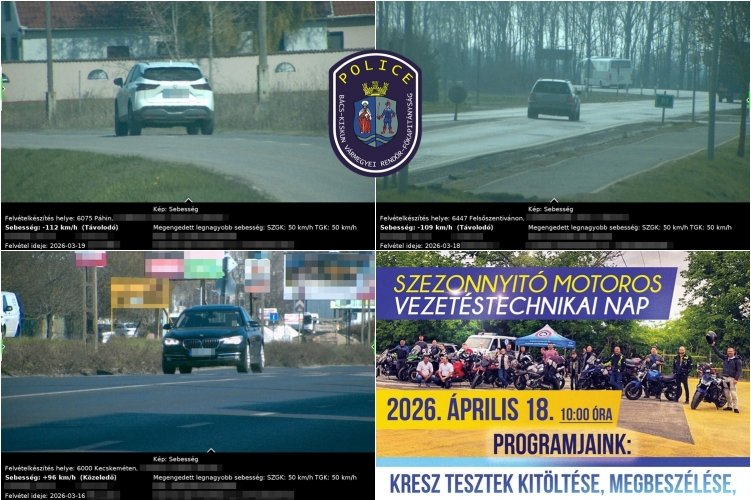 A jó idő beköszöntével egyre többen ülnek motorra, ezért a kiskunfélegyházi rendőrök 2026. április 18-án vezetéstechnikai tréninget szerveznek motorosok számára a Süveges Autósiskola tanpályáján. A részvétel és a program részletei a főkapitányság hivatalos Facebook-oldalán érhetők el.: https://www.facebook.com/photo/?fbid=864543923269660&set=a.118816877842372&locale=hu_HU