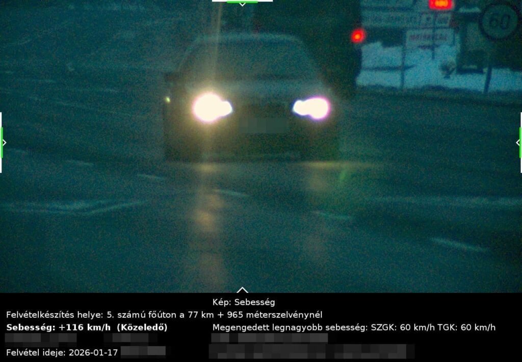 A havas, csúszós útviszonyok egyesek számára nem jelentettek kellő visszatartó erőt a sebességhatárok betartására. Egy sofőr az 5-ös főúton 60 km/h helyett 114 km/h-val, egy másik pedig 129 km/h-val közlekedett. Egy járművezető lakott területen az 50 km/h helyett 94 km/h-val haladt. Valamennyien jelentős összegű pénzbírságra és büntetőpontokra számíthatnak.
