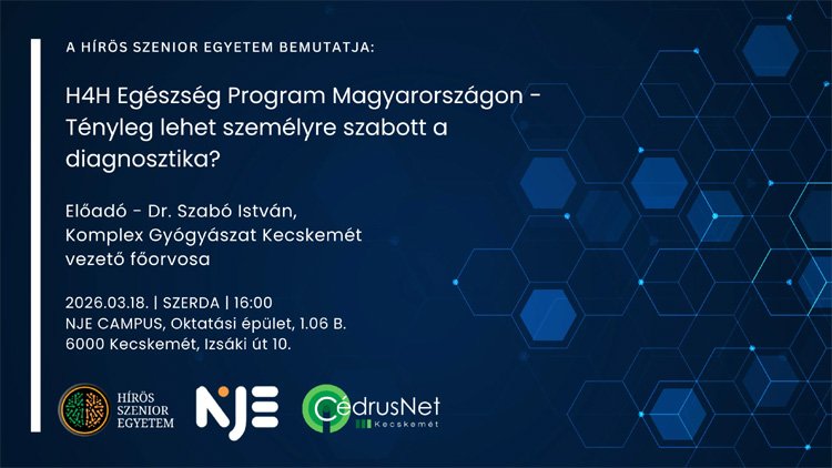 Ezúttal egy rendkívül aktuális és modern témát hoz el a hallgatóságnak: a H4H Egészség Program magyarországi tapasztalatairól beszél. Az előadás címe – „Tényleg lehet személyre szabott a diagnosztika?” – azt ígéri, hogy bepillantást nyerhetünk az orvostudomány jövőjébe, ahol a kezelések már nem sémákra, hanem az egyéni adottságokra épülnek.