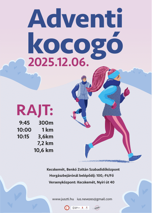 A IUSTITIA Egyesület idén is megszervezi a hagyományos Adventi Kocogót, amelyet 2025. december 6-án, szombaton rendeznek meg a Benkó Zoltán Szabadidőközpontban.