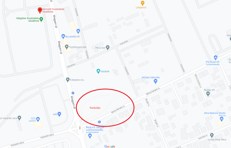 A mérkőzésre 70 db vendégjegyet tudnak biztosítani az NKA Pécs munkatársai. Az erre kijelölt vendég szurkolói bejáron tudnak belépni, majd a fix lelátón helyet foglalni. Parkolni a Megyeri út – Móra Ferenc sarkán, a Vásártérnél lehetséges, az alábbi képen látható helyen.