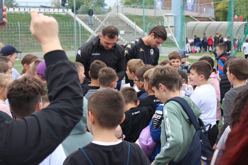 Az esemény zárásaként, az ajándék kiosztása előtt a KTE NB II-es csapatának játékosaival, Pálinkás Gergővel és Bolyki Andorral is találkozhattak a fiatalok, akik rengeteg aláírást kértek támadóinktól.