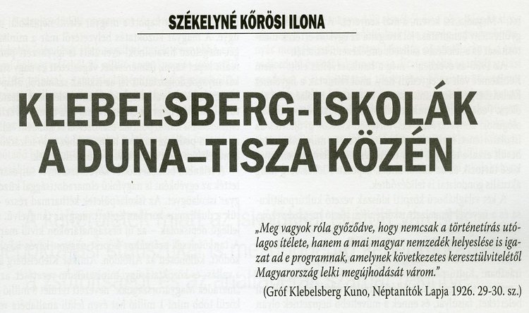 A jubileumi kiadványban kecskeméti szerző írása is helyet kapott: Székelyné Kőrösi Ilona tanulmánya a második kötetben olvasható. A kiadvány borítóján a méheslaposi (ma műkertvárosi) iskola fényképe látható. Annak az épületnek az emlékét őrzi, ahol 1926. október 4-én tartották az elsőként felépült alföldi Klebelsberg-iskola avatóünnepségét.